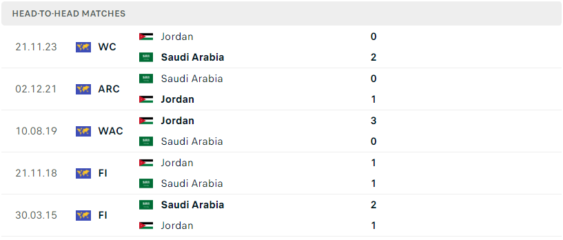 Thành tích đối đầu của Ả Rập Xê Út vs Jordan
