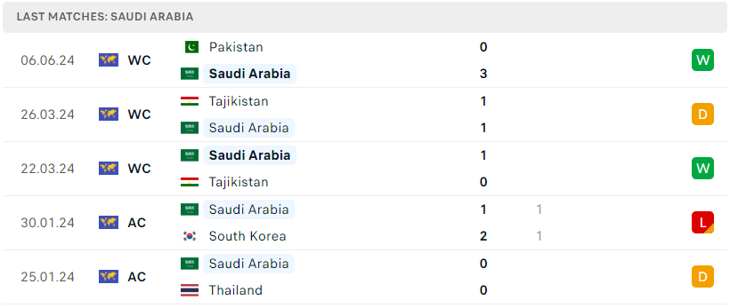 Phong độ đội bóng Ả Rập Xê Út vs Jordan