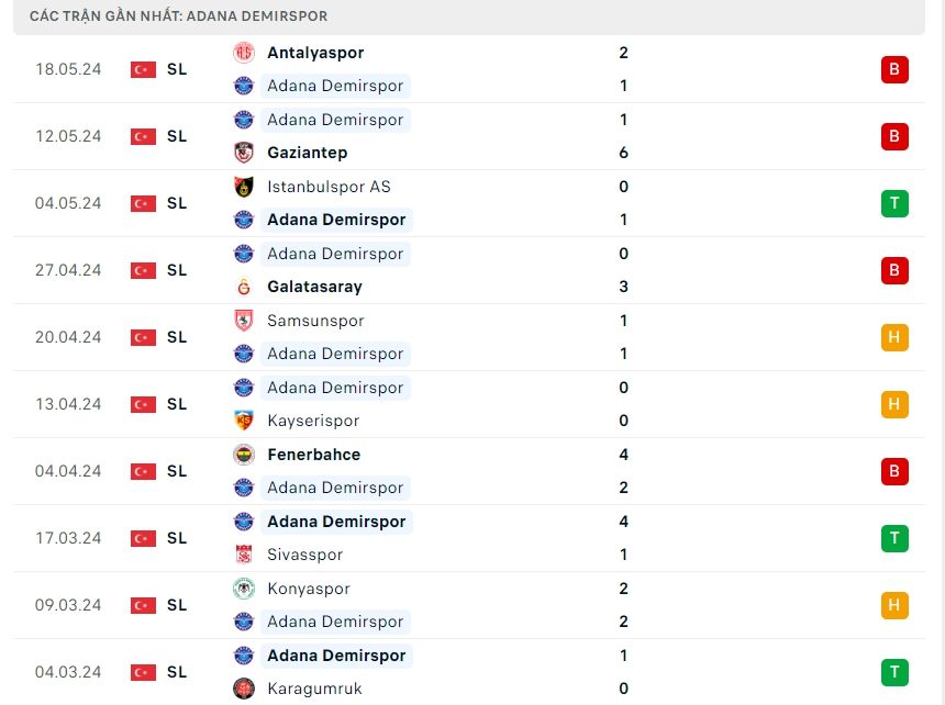 -Phong độ Adana Demirspor