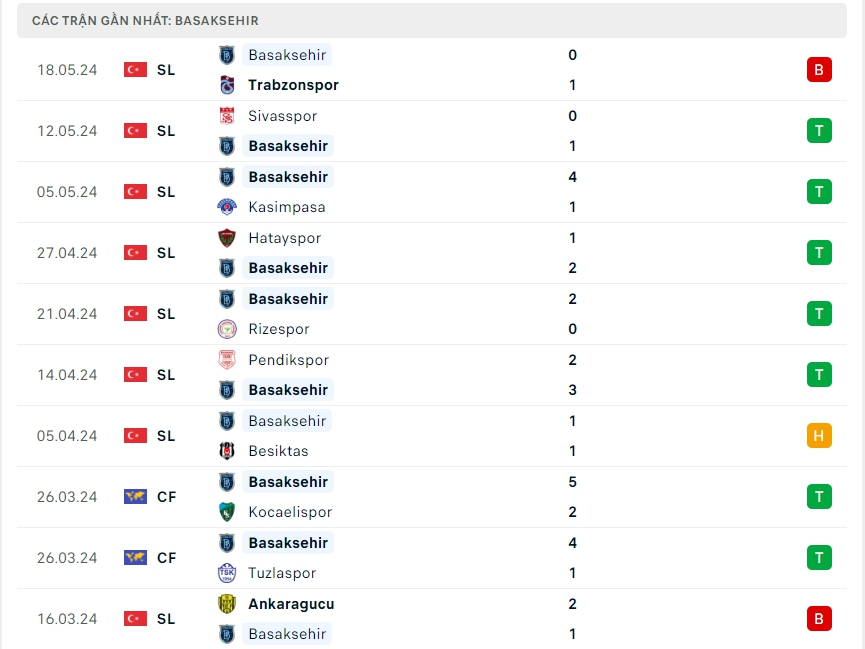 -Phong độ Basaksehir