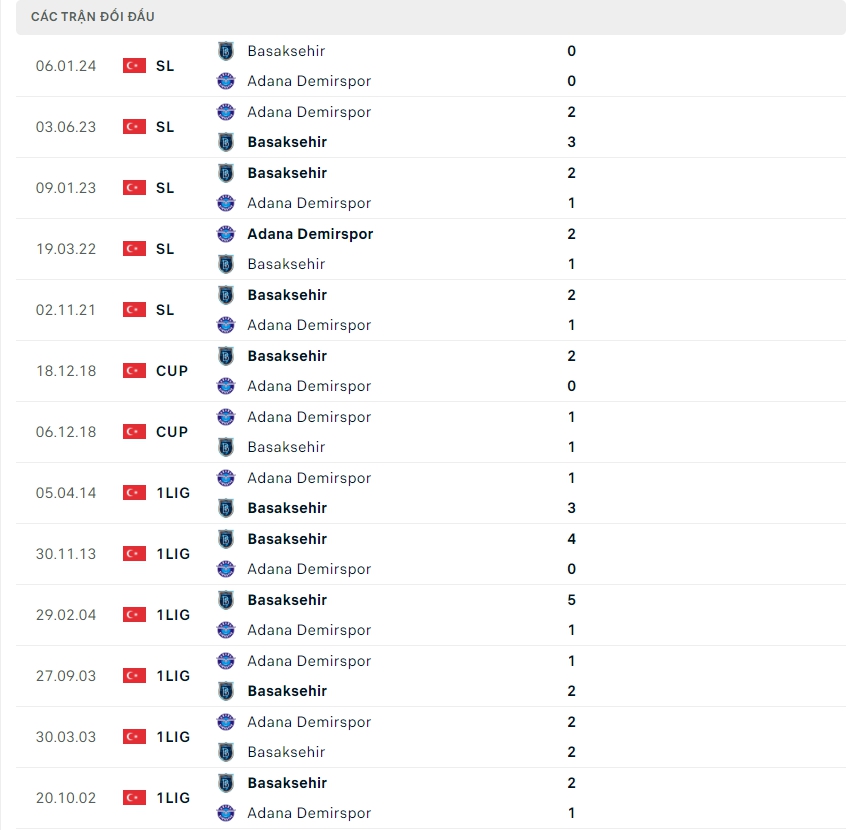 Lịch sử thi đấu của Adana Demirspor vs Basaksehir