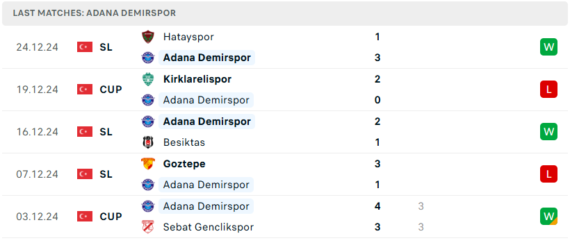 Phong độ của Adana Demirspor