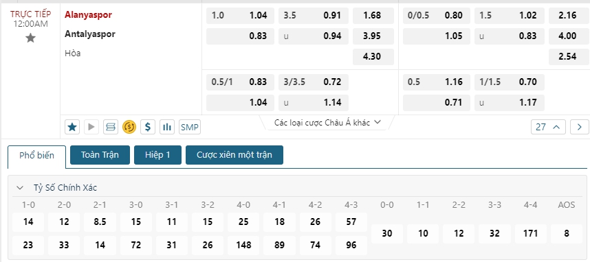 Soi kèo tài xỉu Alanyaspor vs Antalyaspor