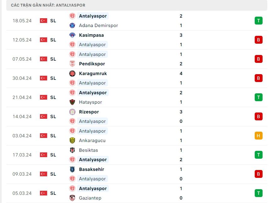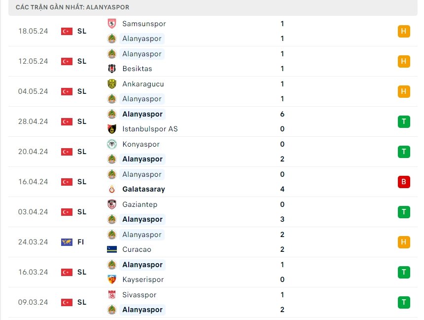 Phong độ đội bóng Alanyaspor vs Antalyaspor