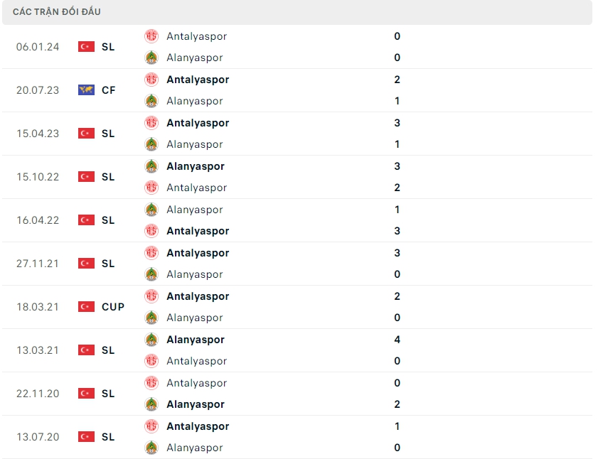 Lịch sử thi đấu của Alanyaspor vs Antalyaspor
