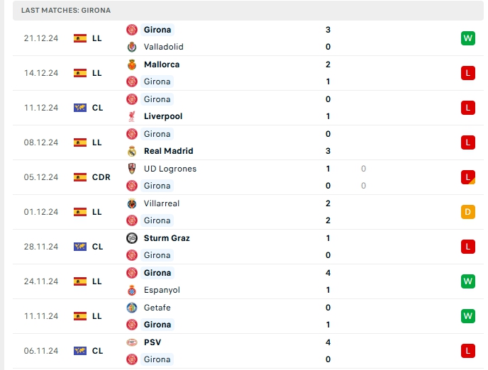 -Phong độ Girona