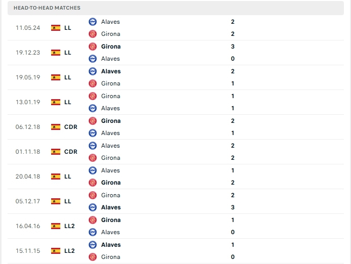Lịch sử thi đấu của Alaves vs Girona