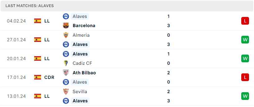 Trận thua múi mặt 1-3 trước Barcelona ít giờ trước đã giáng một đòn tâm lý nặng nề xuống Alaves đang bay cao ở hiện tại. Dù vậy, nhưng đoàn quân Luis Garcia cần phải nhanh chóng quên đi thất bại này và sớm trở lại, khi trước mặt họ đang là một Villarreal tràn đầy nhuệ khí. Đây chắc chắn là nhiệm vụ không hề đơn giản và Alaves buộc phải thể hiện được bản lĩnh trong trận đấu sắp tới.