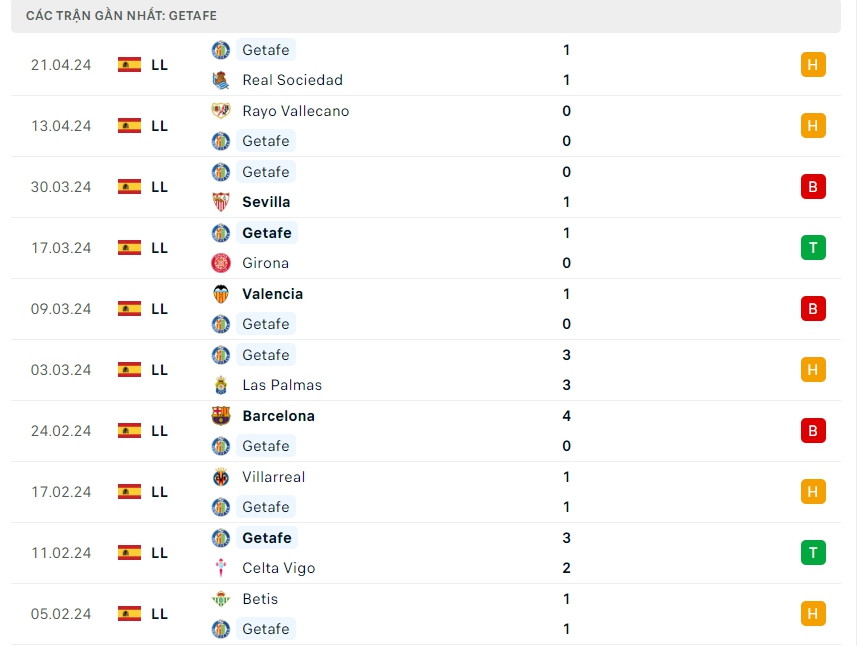 Trong khi đó với Getafe, trận hòa gần nhất trước Real Sociedad nối dài chuỗi 3 trận không thắng của họ thời gian qua, tuy vậy với 40 điểm có được họ vẫn đang có cho mình vị trí thứ 10 trên BXH và đang có được vị trí an toàn với 15 điểm tạo ra so với nhóm cầm đèn đỏ, hàng công của Getafe ở mùa giải năm nay chỉ thi đấu ở mức tròn vai với 38 bàn thắng bên cạnh hàng thủ để thủng lưới 44 bàn thua, 5 trận gần nhất khi xa nhà, hàng công của họ chỉ mang về được 2 bàn thắng.
