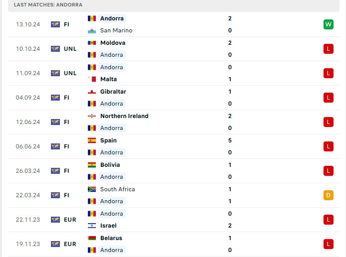 Andorra vừa qua có chiến thắng trước San Marino ở trận cầu giao hữu, còn ở sân chơi Nations League, đội bóng này thể hiện phong độ tệ hại sau 2 lượt trận toàn thua và đang xếp cuối cùng ở bảng D2, hàng công của Andorra chưa có bàn thắng nào cùng hàng thủ nhận 3 bàn thua, cả 2 trận đấu đó của Andorra khép lại không quá 2 bàn, trên sân nhà của mình Andorra cũng đang chơi tệ với chuỗi trận thua kéo dài, 4/5 trận trên sân nhà vừa qua của Andorra cũng không vượt mốc quá 2 bàn.
