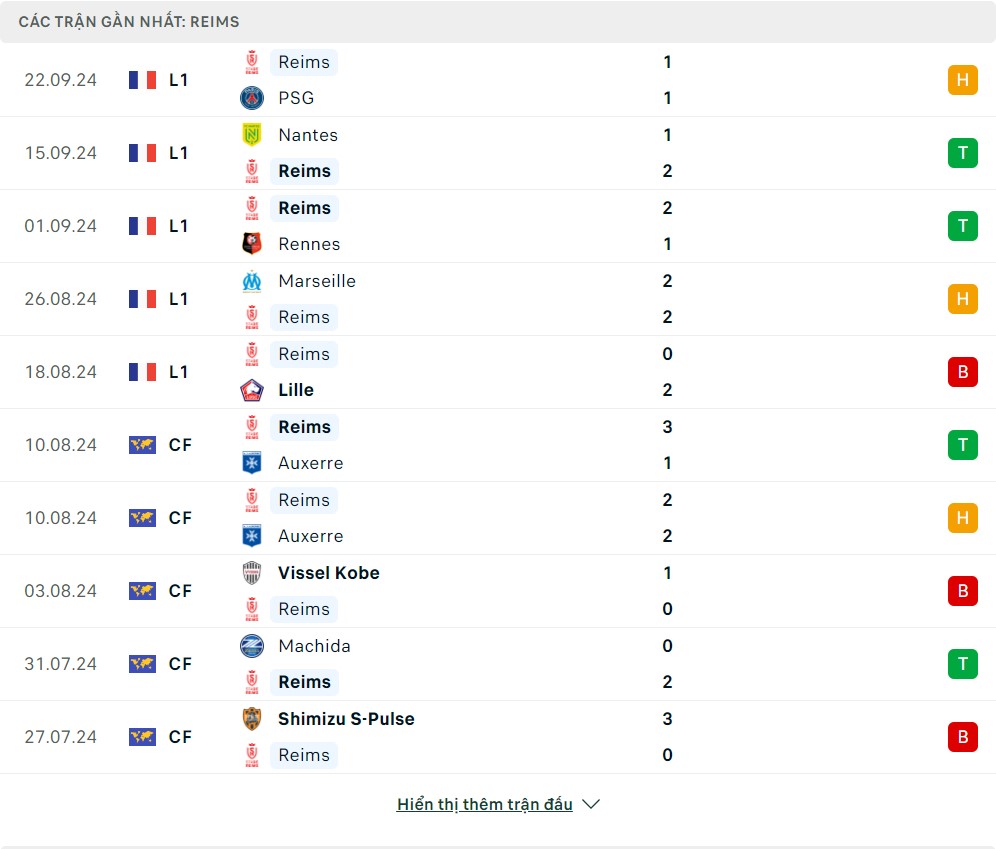 -Phong độ Stade Reims