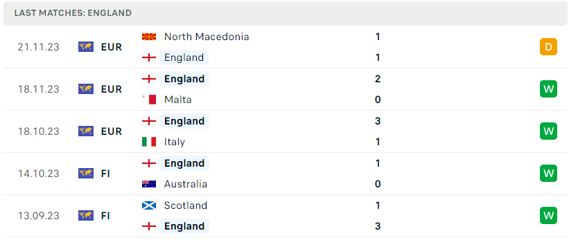 Có vẻ như đội tuyển Anh ngày một lớn mạnh dưới thời HLV Gareth Southgate, sau sự thành công tại World Cup 2022, Tam Sư tiếp tục thi đấu ổn định và thuận lợi vượt qua vòng loại Euro với vị thế nhất bảng. Đáng chú ý, trong 8 trận đấu mà họ đã chơi thì binh đoàn áo trắng cũng không phải nhận về bất kỳ thất bại nào. Một phong độ đầy ấn tượng cùng với dàn nhân sự toàn sao sẽ hứa hẹn mang đến một Tam Sư lột xác tại Đức vào mùa hè tới.