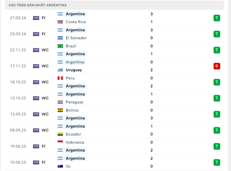 -Phong độ Argentina