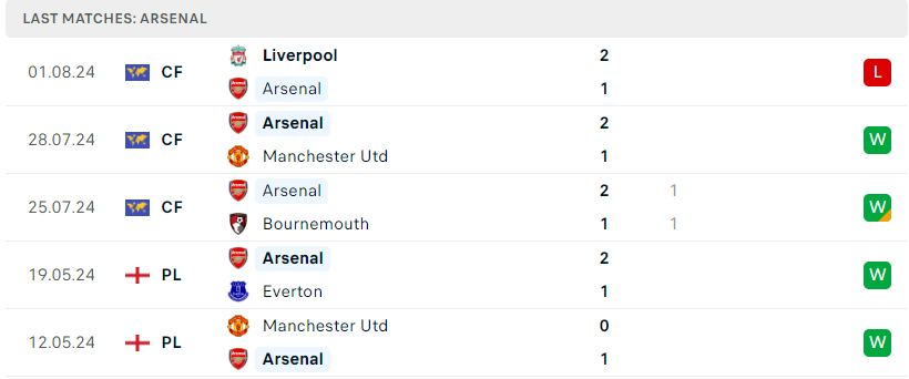 Phong độ đội bóng Arsenal vs Lyon