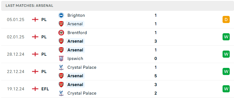 Phong độ đội bóng Arsenal vs Manchester Utd