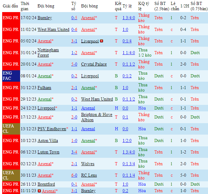 Kèo châu Âu cũng đang là sự ưu thế cho đội chủ nhà khi mức ăn của Arsenal đang là 1.33 trong khi đó con số này của Newcastle United đã là 7.70. Chắc chắn đây là một thời điểm mà Arsenal sẽ cần phải thể hiện được bản lĩnh của mình, việc vẫn đang duy trì được một phong độ rất tốt giúp cho họ dường như có thể mở ra các toan tính trước một Newcastle United đầy khó chịu và tìm kiếm lợi thế ở trận đấu sắp tới.
