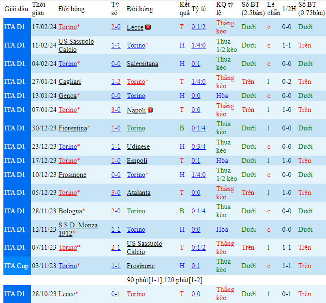 - Chọn Torino +0.25 HT