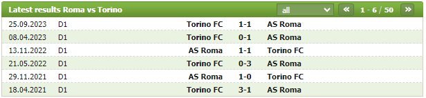 Lịch sử thi đấu của AS Roma vs Torino