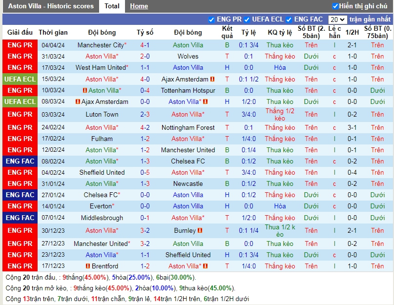 Kèo châu Âu cũng đang là sự ưu thế lớn cho đội chủ nhà khi mức ăn của Aston Villa đang là 1.58 trong khi đó con số này bên phía Brentford đã là 4.80. Nhìn chung việc đang áp đảo trên các phương diện về đội hình lẫn lợi thế sân bãi sẽ tạo ra một đà tâm lý rất tốt để Aston Villa hoàn toàn có thể làm chủ được trận đấu sắp tới. Sẽ là một kèo đấu mà Aston Villa được kì vọng sẽ có thể dễ dàng có được chiến thắng trước Brentford.