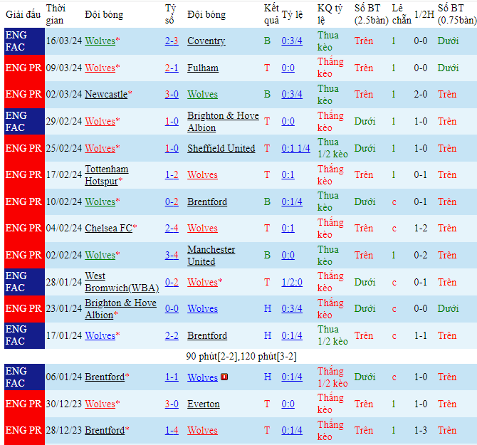 Trong khi đó với Wolves, chiến thắng 2-1 trước Fulham vẫn đang giúp cho các vị khách có được những sự thăng tiến nhất định cho đến hiện tại. Trận thắng thứ 3 trong 4 vòng đấu gần nhất mà Bầy Sói có được là một sự khích lệ không hề nhỏ đối với họ, bằng chứng là việc Wolves vẫn đang tìm được một vị trí ở khu vực nửa trên BXH lúc này với 41 điểm có trong tay sau 28 trận đã thi đấu. Chắc chắn sự khó chịu của Wolves sẽ là một sự đe dọa không hề nhỏ dành cho Aston Villa ở trận đấu sắp tới. Màn so tài sẽ là sự lấn lướt của đội chủ nhà, tuy nhiên khả năng nổ tài ít nhiều sẽ để lại những hoài nghi.