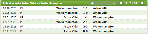 Lịch sử thi đấu của Aston Villa vs Wolves