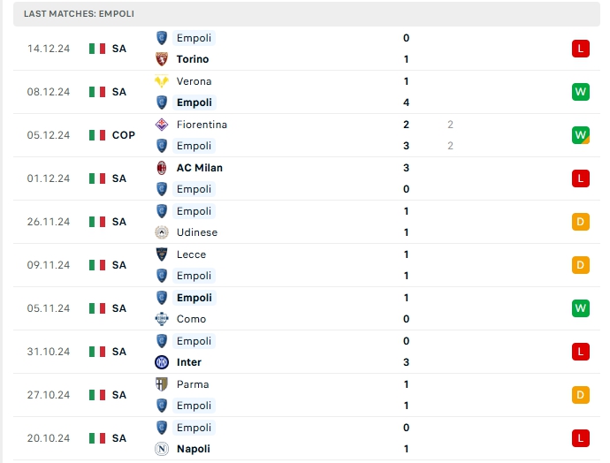 -Phong độ Empoli