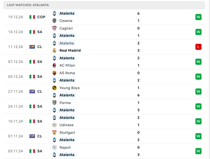 -Phong độ Atalanta