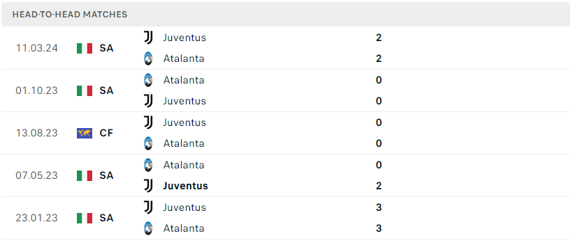 Dù không phải là tập thể quá nổi bật về khả năng tấn công và tận dụng cơ hội, tuy nhiên mỗi khi đối đầu với Atalanta, Juventus buộc phải chơi theo đối thủ. Trận hòa 2-2 ở lượt về Serie A mùa này là một minh chứng, do đó với tính chất quan trọng của trận chung kết này thì nhiều khả năng hai đội sẽ cống hiện một trận đầu hấp dẫn và khả năng nổ tài là rất cao.