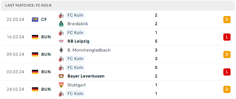 Phía bên kia, FC Koln lại không được may mắn như vậy khi tập thể này đã trải qua đến 6 vòng đấu liên tiếp toàn hòa và thua. Đáng ngại hơn, Cologne hiện cũng đã rơi xuống nhóm cầm đèn đỏ và kém vị trí an toàn lên đến 7 điểm. Một mùa giải đặc biệt khó khăn với tập thể sông Rhine, thời gian không còn nhiều và nếu không sớm tìm ra giải pháp để sớm vực dậy tinh thần thì tin chắc rằng ngay trở về Bundesliga 2 cũng chỉ còn là vấn đề thời gian.