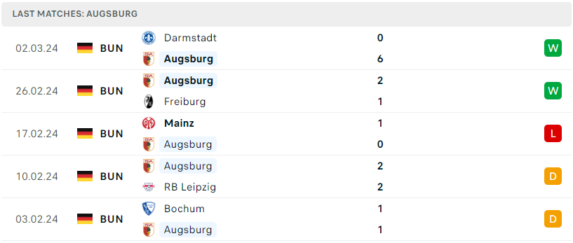 Có vẻ như sau chuỗi ngày tháng hết sức khó khăn ở đầu năm mới thì sự tự tin đang quay trở lại với Augsburg, bằng chứng trong 5 vòng đấu gần nhất thì thầy trò Jess Thorup đã bất bại đến 4. Dẫu sao thì tập thể vùng Schwaben vẫn luôn được đánh giá rất cao tại Bundesliga và với một điểm rơi phong độ chói sáng như hiện tại thì họ hoàn toàn có thể nuôi tham vọng chen chân vào nhóm dự cup Châu Âu. Tiếp đón Heidenheim được xem là bài test quan trọng để đánh giá thực lực của họ lúc này.