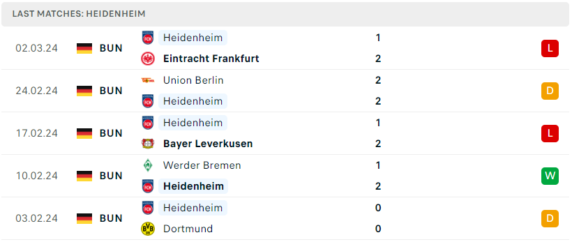 Trong khi đó với Heidenheim, tân binh lại đang trải qua một khoảng thời điểm tương đối khó khăn khi họ liên tục vấp ngã trước những đối thủ không quá mạnh. Trận thua trước Frankfurt ở vòng đấu trước đã là trận không thắng thứ 7/8 lần ra sân gần nhất của họ tại Bundesliga. Việc thiếu kinh nghiệm trận mạc và bản lĩnh đang khiến cho Heidenheim hụt hơi trong cuộc đua đường dài. Vẫn còn rất nhiều khó khăn đang chờ đợi và trận đấu sắp tới sẽ là một trong số đó.