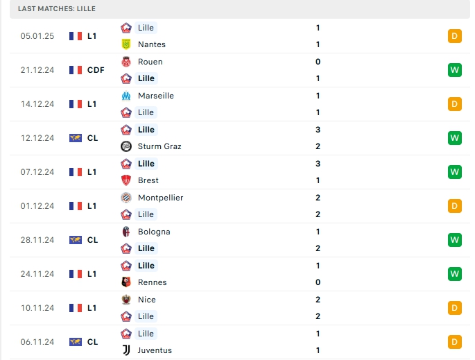 Phía bên kia chiến tuyến, Lille vừa có trận hòa trước Nantes, đây cũng là trận bất bại thứ 18 của họ trên mọi đấu trường, trải qua 16 trận đấu Lille có cho mình 7 chiến thắng,7 hòa cùng 2 thất bại, mang về 28 điểm và đang xếp vị trí thứ 4 trên BXH, hàng công của Lille có được 26 bàn thắng cùng hàng thủ nhận 16 bàn thua, 3/5 trận vừa qua của Lille cũng không quá 2 bàn, khi thi đấu xa nhà, hàng công của Lille có được 12 bàn thắng cùng hàng thủ nhận 6 bàn thua sau 8 trận đấu, 3/5 trận xa nhà vừa qua của Lille khép lại không quá 2 bàn.