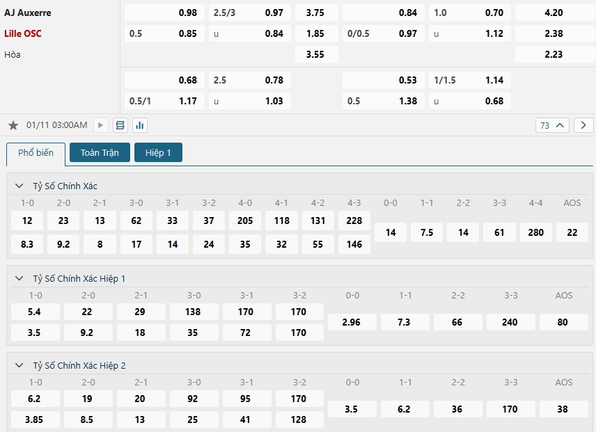 Kèo Châu Âu vẫn đang là sự ưu ái dành cho đoàn quân của HLV Bruno Genesio khi mức ăn của họ là 1.85 và con số này của chủ nhà Auxerre là 3.75. Với phong độ tốt cùng thực lực được đánh giá cao hơn là cơ sở để đặt niềm tin vào Lille cho trận đấu này.