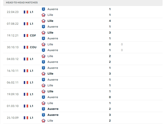 Những màn đụng độ giữa hai đội thường diễn ra không quá hấp dẫn và ít bàn thắng được tạo ra, Lần chạm mặt nhau gần nhất giữa Auxerre và Lille khép lại với chỉ 2 bàn thắng được tạo ra và 3 trong 5 lần đón tiếp Lille trên sân nhà của Auxerre cũng khép lại với kết quả tương tự, một trận đấu chặt chẻ và không quá hấp dẫn.
