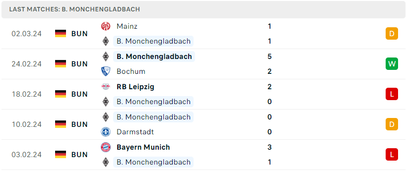 Phong độ của B. Monchengladbach