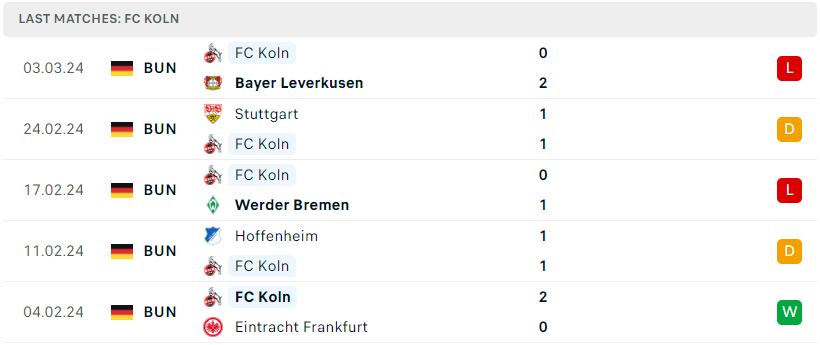 Phong độ của FC Koln