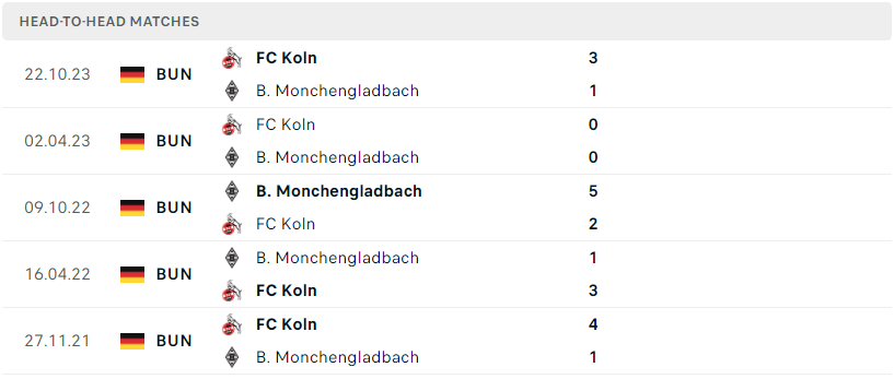 Phong độ đội bóng B. Monchengladbach vs FC Koln