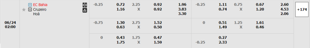 Soi kèo Châu Á, kèo chấp Bahia vs Cruzeiro