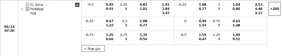 Kèo châu Âu cũng đang là sự ưu thế cho đội chủ nhà khi mức ăn của Bahia đang là 1.91 trong khi đó con số này của Fortaleza đã là 3.84. Ưu thế sân nhà và đón tiếp một đối thủ đang gặp nhiều khó khăn về mặt phong độ khi thi đấu xa nhà cộng với đó là sự ổn định và tự tin trong những lần đối đầu sẻ giúp Bahia tự tin hướng đến chiến thắng cho mình.