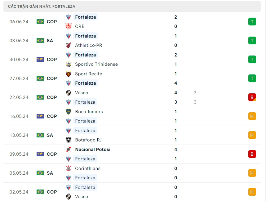 -Phong độ Fortaleza