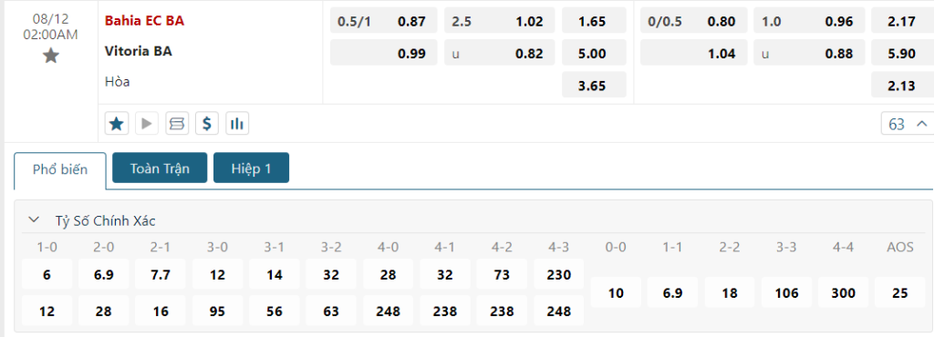 Kèo Châu Âu vẫn đang là sự nhỉnh hơn dành cho Bahia, khi mức ăn của họ là 1.65 và con số này của các vị khách là 5.00. Về cơ bản, với kinh nghiệm thực lực và những màn thể hiện của thầy trò Rogério Ceni từ đầu mùa có lẽ việc đánh bại một Vitoria đầy yếu kém trong thời điểm khó khăn này sẽ chẳng phải là nhiệm vụ quá khó, đặc biệt là khi họ còn được thi đấu tại “sào huyệt” quen thuộc.