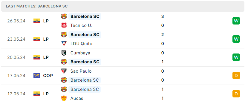 Phong độ đội bóng Barcelona SC vs Cobresal
