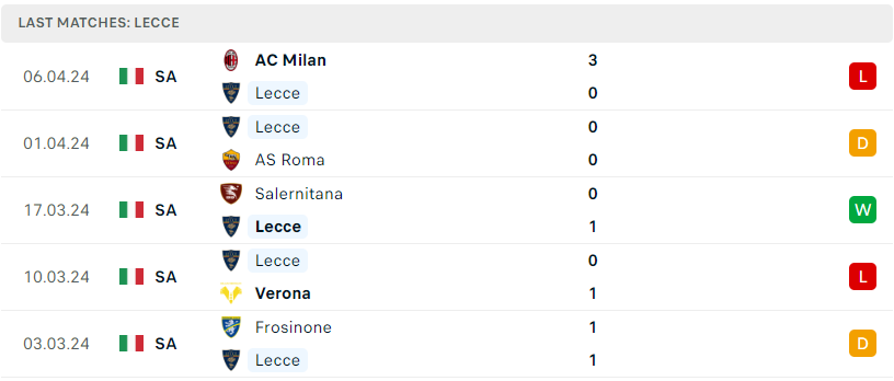 Phong độ của Lecce