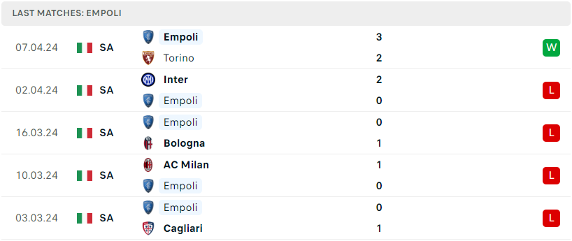 Phong độ của Empoli
