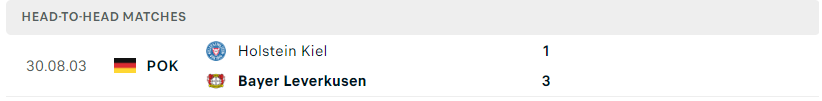 Lịch sử ghi nhận, đôi bên chỉ có 1 lần đụng độ tại cup quốc gia và tại đây Bayer Leverkusen cũng đã thể hiện sự vượt trội với chiến thắng 3-1. Ở thời điểm mà “Die Werkself” đang là nhà ĐKVĐ Bundesliga với đẳng cấp đã được chứng minh thì trước một đội bóng nhỏ bé như Holstein Kiel, họ chắc chắn sẽ không gặp nhiều khó khăn và để đánh rơi 3 điểm.