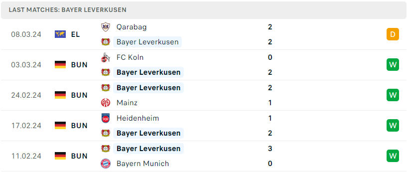 Phong độ đội bóng Bayer Leverkusen vs Qarabag
