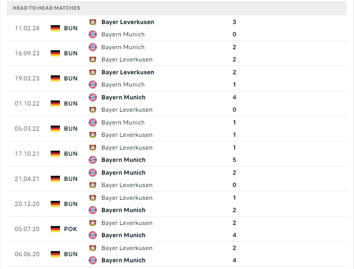 Những màn đụng độ giữa Bayern Munich và Bayer Leverkusen thường diễn ra vô cùng hấp dẫn và kịch tính, 8/10 lần chạm mặt trong quá khứ và 3/5 lần đón tiếp Bayer Leverkusen trên sân nhà của mình đều khép lại 90 phút từ 3 bàn thắng trở lên, một trận đấu hứa hẹn đầy hấp dẫn và kịch tính.
