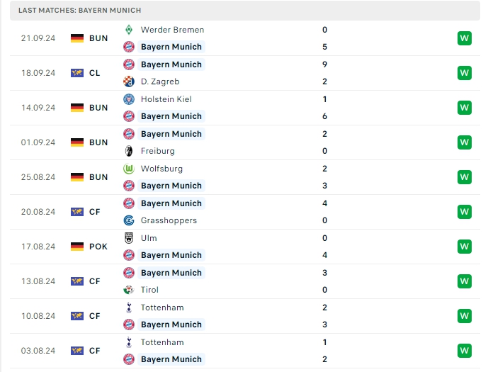 Bayern Munich vừa có được chiến thắng ấn tượng 5-0 trước Werder Bremen, đây là trận thắng thứ 10 liên tiếp của họ và nối dài chuỗi bất bại lên con số 12, sau 4 lượt trận đầu tiên thì Bayern Munich có được 4 chiến thắng và với 12 điểm tuyệt đối thì Hùm Xám có được vị trí dẫn đầu trên BXH, hàng công của Bayern Munich có cho mình 16 bàn thắng cùng hàng thủ nhận 3 bàn thua, 3/4 trận đấu đó khép lại 90 phút từ 4 bàn thắng trở lên, trên sân nhà của mình đoàn quân của HLV Vincent Kompany có được cho mình 20 bàn thắng, cùng hàng thủ chỉ nhận 2 bàn thua, 3/5 trận đấu đó khép lại 90 phút từ 3 bàn trở lên.