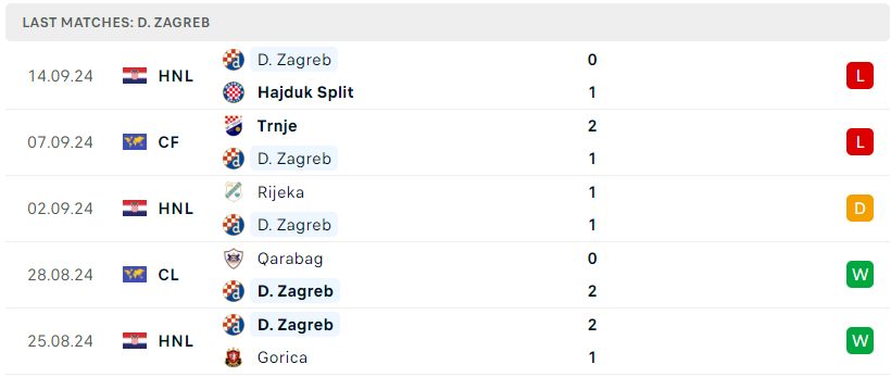Phong độ của Dinamo Zagreb