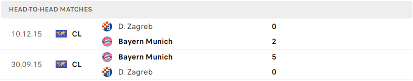 Thành tích đối đầu của Bayern Munich vs Dinamo Zagreb